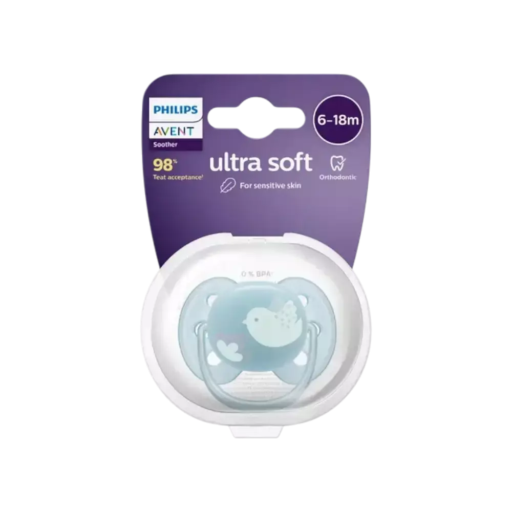 Chupete Avent Ultra Soft 6-18m SCF092/04 Brinda el máximo cuidado para la delicada piel del bebé. Su protector flexible reduce las marcas e irritaciones, con una cómoda boquilla de silicona suave y 98% aceptación de pezones. Desarrollado junto a profesionales de la salud y madres. Incluye dos estuches esterilizadores/de transporte, ideales para esterilizar en microondas y transportar higiénicamente. Calidad y bienestar en cada detalle.