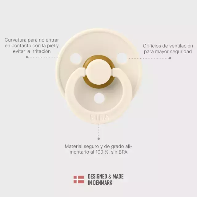 Fabricados en Dinamarca desde hace más de 40 años, los Bibs son mundialmente reconocidos por su forma ergonómica, inspirada en los chupetes clásicos de toda la vida. Su diseño permite que el bebé succione de manera natural, ayudando a calmar, consolar y satisfacer su necesidad de succión.