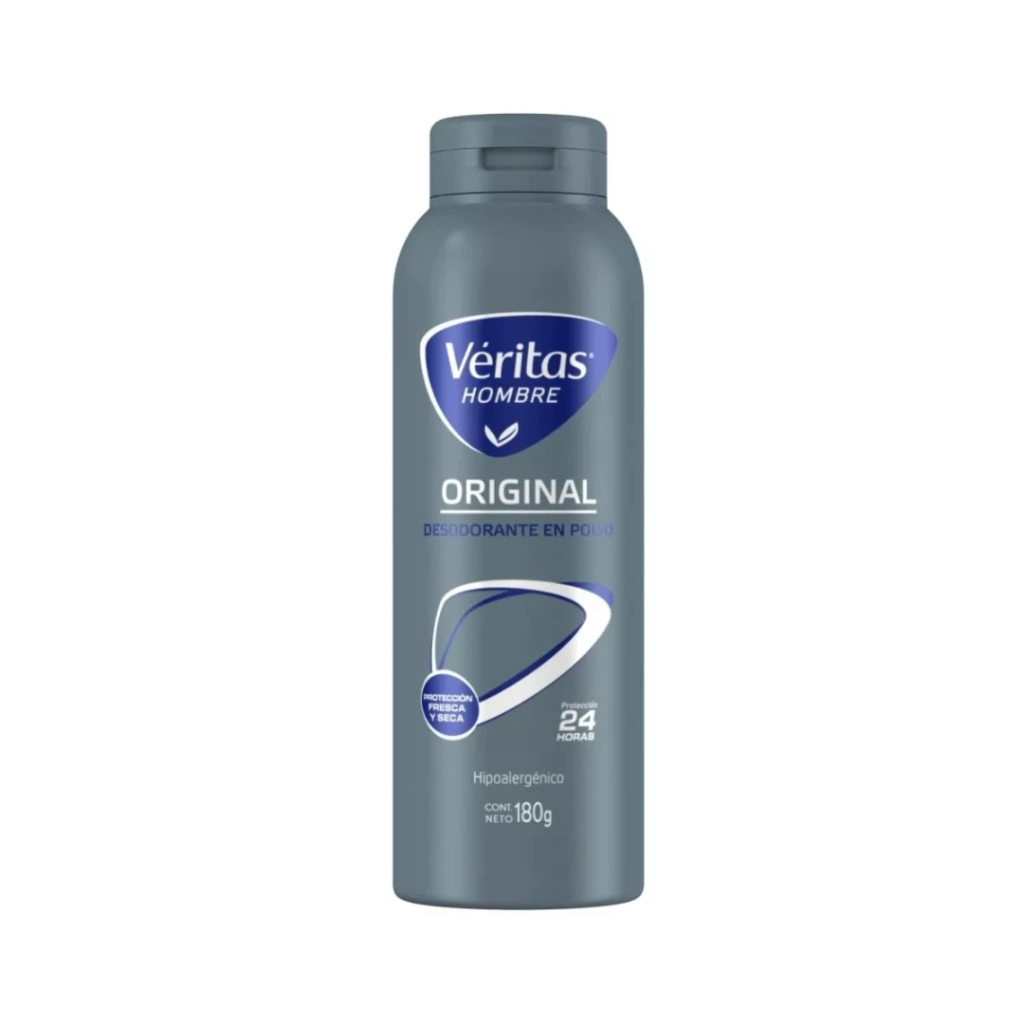 Los polvos desodorantes Veritas garantizan el cuidado y protección de tu piel durante 24 hs, ayudando a prevenir su irritación. Su exclusiva fórmula hipoalergénica, de textura fina y extremada blancura, brinda frescura y suavidad, con variadas fragancias que perfuman tu cuerpo. Elimina el olor de la transpiración y ayuda a evitar irritaciones en la piel. Comodidad y frescura para todo el día. Este producto, que se presenta en una práctica botella de 180 g, ha sido testeado dermatológicamente para asegurar su seguridad y eficacia. Aunque no es apto para bebés, su formulación hipoalergénica lo convierte en una opción ideal para quienes buscan un desodorante suave y efectivo. Con su línea de Polvo Desodorante, Veritas se compromete a ofrecer un producto nuevo y de calidad, que se adapta a las necesidades de tu piel, garantizando una experiencia de uso placentera y confiable.