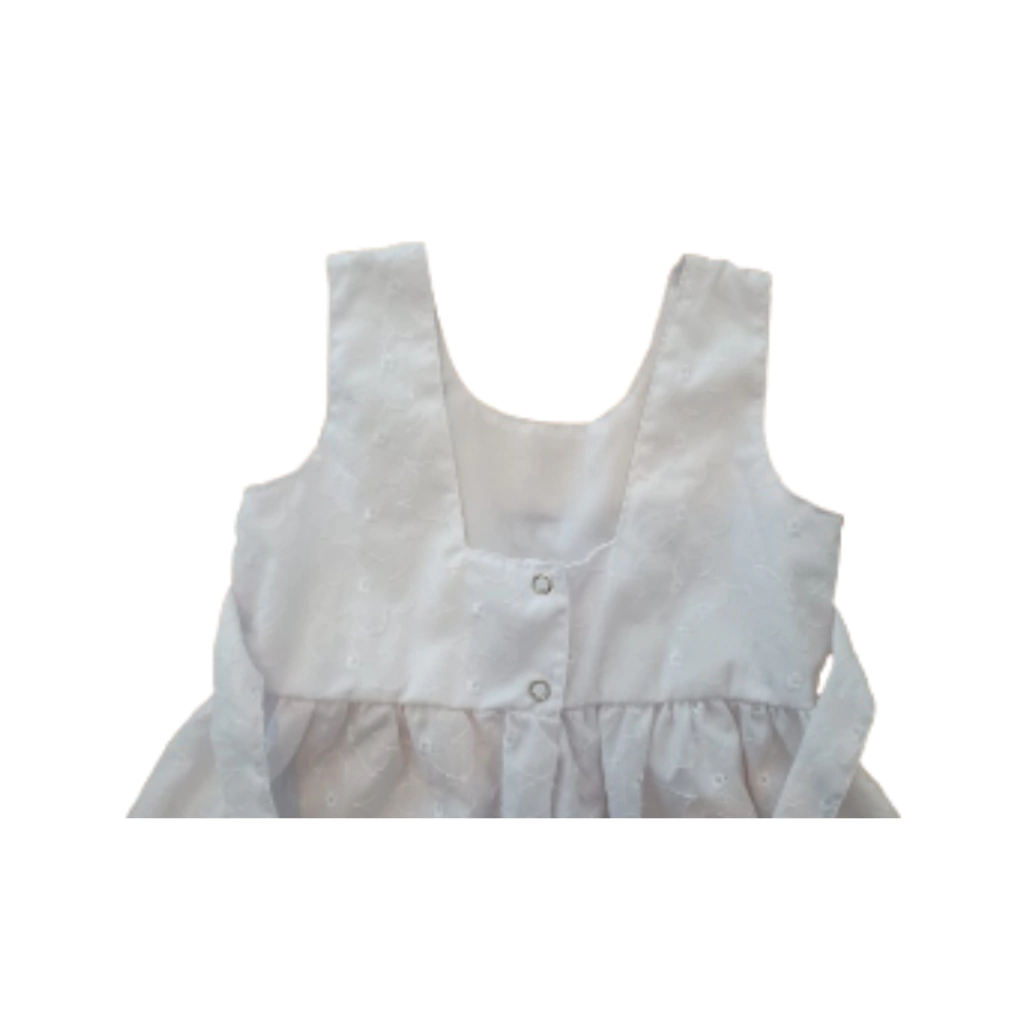 Este vestido con flores bordadas combina elegancia y comodidad para cualquier ocasión. Diseñado sin mangas, cuenta con una cinta para sujetar que realza su figura y 2 broches en la espalda para un ajuste perfecto. Ideal para quienes buscan estilo y sofisticación en su vestuario diario.